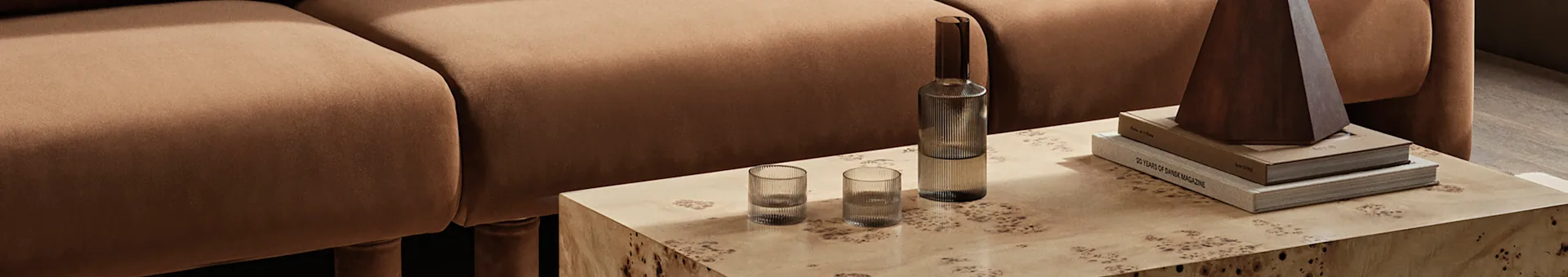 Ferm Living fait ressortir ses produits en travaillant sur la qualité des matières. En utilisant des matériaux bruts de qualité, ils créent des produits avant-gardistes, mais joliment équilibrés. Ces différentes textures sont complétées par les couleurs profondes et les motifs ludiques qu'ils mettent en œuvre dans la conception de tout, des carafes Ferm Living jusqu'aux lampes.