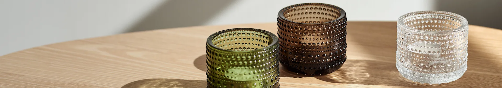 La plupart des bougeoirs sont en verre fin, comme les célèbres modèles des collections Kastehelmi et Valkea Kollektion von Iittala. d’Iittala. Le verre permet de jouer avec la lumière et les couleurs, créant de magnifiques effets. On trouve également des bougeoirs en métal, comme la lanterne Etch de Tom Dixon, dont la lumière filtre à travers de petites ouvertures pour créer des jeux d’ombre et de lumière intéressants. Les matériaux les plus courants pour les bougeoirs et lanternes sont :