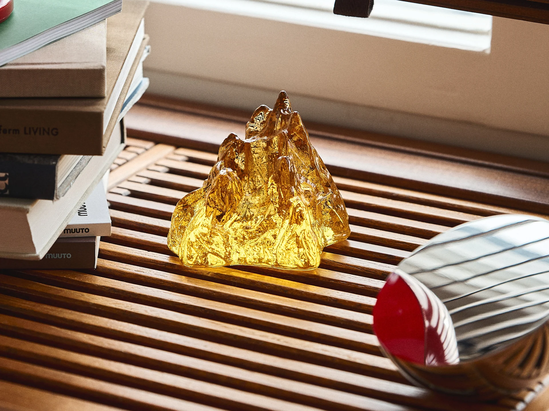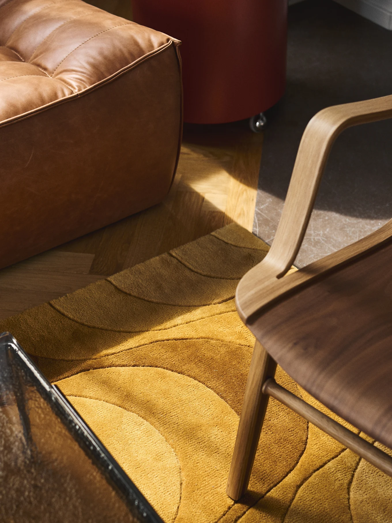 Avec Eclectic Curation, on retrouve beaucoup de bois non traité, de matériaux naturels comme la laine et le verre, combinés à de l'acier inoxydable, à des finitions chromées, à du polycarbonate et à des matériaux recyclés.
