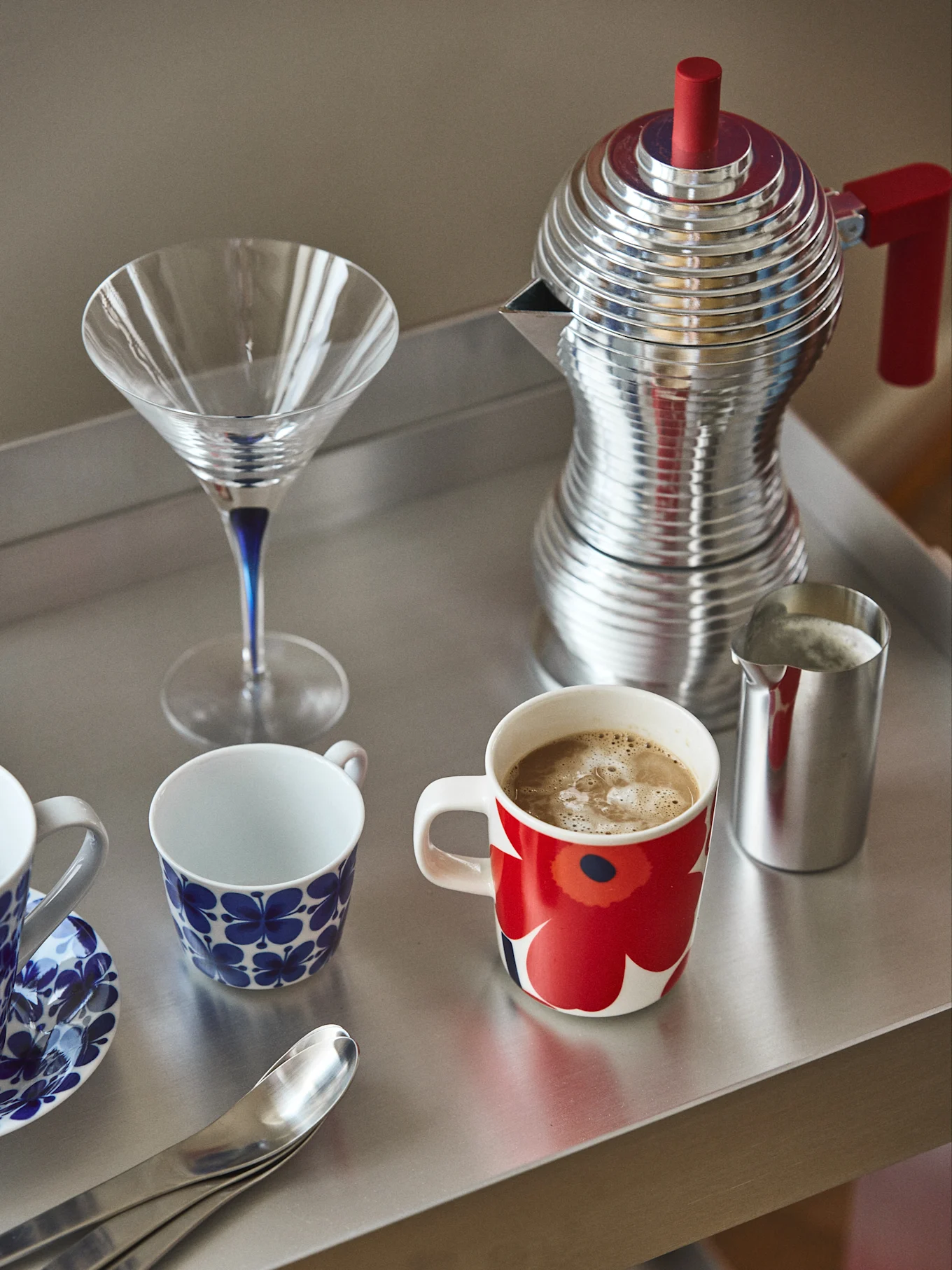 Cette tendance s'inspire largement des années 60 et 70, adoptant les couleurs vives, les formes géométriques et fluides et les combinaisons de motifs ludiques, principalement les rayures et les carreaux, qui sont devenus emblématiques au fil du temps. La palette de couleurs est tout en contrastes et le bleu chronomancien ainsi que le rouge lipstick en sont les acteurs principaux, soutenus par un vert pomme, du moutarde, une touche d'orange des années 70 et un marron terreux qui sert de base.