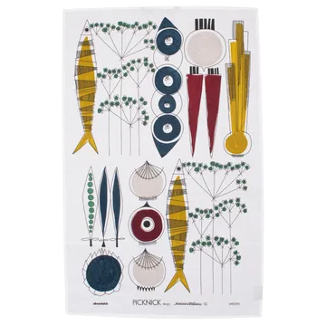 Le torchon Picknick d'Almedahls est orné d'un ravissant motif rétro de Marianne Westman. Marianne Westman est l'une des plus grandes créatrices suédoises de porcelaine de tous les temps. Elle a dessiné le motif Picknick pour un ensemble de vaisselle dans les années 1950. Ici, il est imprimé sur un torchon en coton et en lin avec un bon pouvoir d'absorption et une qualité confortable.