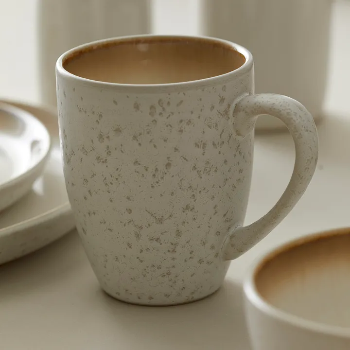 Tasse Bitz 30 cl crème a un extérieur mat crème qui, en contraste avec l’intérieur brillant, crée un effet saisissant. Profitez d’une tasse chaude de thé, de café ou de chocolat et associez volontiers la tasse à d’autres pièces en grès de Bitz.