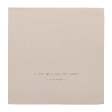 Serviette avec citation Ernst I det enkla Lot de 20 sont des serviettes en papier avec la célèbre citation imprimée au centre. Elles apportent à votre table une allure apaisée et réfléchie, idéale pour le quotidien comme pour les fêtes. Leur design uni met en valeur la vaisselle, les verres et les autres détails de la table. La création d’Ernst Kirchsteiger exprime la simplicité et la réflexion. Un lot pratique de 20 pièces, parfait pour les dîners, les pauses café et les grandes occasions.