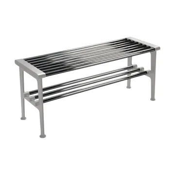 Banc Nostalgi 100 cm de Essem Design est fabriqué en aluminium recyclé et en tige ronde, offrant un design durable et épuré. Le banc, inspiré de la classique « Nostalgihyllan », constitue un ajout flexible à l'entrée : il sert parfaitement de siège pour changer de chaussures ou comme partie d'un banc plus long avec des entretoises intermédiaires. Avec sa forme intemporelle et sa construction solide, le Banc Nostalgi 100 cm s'intègre aussi bien dans des environnements modernes que classiques et peut être facilement adapté selon les besoins.