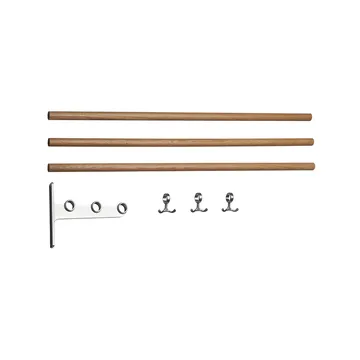 Étagère à chaussures/à chapeaux Nostalgi à assembler d'Essem Design, conçue par Gunnar Bolin, est un classique intemporel de 1937. L'étagère peut être utilisée comme étagère à chaussures ou à chapeaux et est fabriquée en aluminium recyclé et en tige ronde en bois ou en aluminium. Elle est livrée avec des crochets et peut être agrandie pour s'adapter à vos besoins. Maximum dix cintres recommandés par mètre d'étagère à chapeaux. Personnalisez selon vos souhaits en coupant les tiges rondes à la longueur désirée.