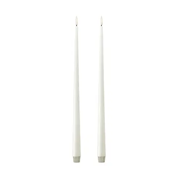 Bougie à chandelier LED ester & erik 30 cm Lot de 2 est fabriquée en véritable cire et est proposée dans les couleurs classiques d'ester & erik. Avec une flamme LED 3D réaliste qui vacille doucement, les bougies diffusent une lueur chaude et accueillante. Le design élégant des bougies, fidèle à la forme iconique d'ester & erik, convient parfaitement à de nombreux types de bougeoirs grâce à leur base flexible. Créez un éclairage d'ambiance dans votre maison sans compromettre la sécurité – idéal pour les occasions festives comme pour le quotidien.