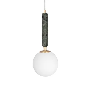 La Suspension Torrano 15 cm de Globen Lighting possède une cloche en verre opalin de forme sphérique qui diffuse une lumière douce et agréable dans la pièce. Le marbre et les détails métalliques couleur laiton confèrent à la lampe une allure luxueuse.