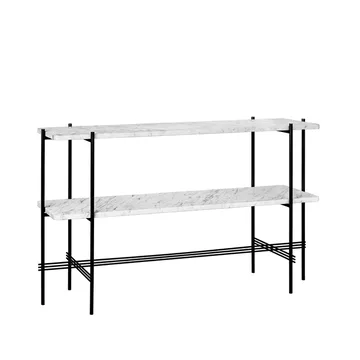 Table d’appoint TS Console 120x30x72 cm, white carrara marble, structure noire, 2 étagères en marbre GUBI