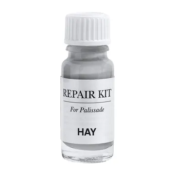 Le Palissade repair kit 10 ml de HAY est un kit pratique et facile d'utilisation pour réparer simplement les petites détériorations de vos meubles Palissade. Le kit contient une flacon de 10 ml de peinture assortie aux nuances des meubles Palissade ainsi qu’un applicateur pour une application précise et fluide. Avec ce kit, vous pouvez rapidement corriger les éraflures et petits chocs sans avoir à remplacer le meuble, ce qui en fait une solution intelligente et durable pour tous les modèles Palissade.
