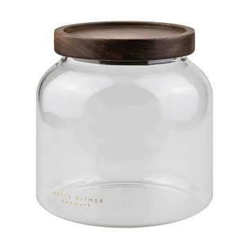 Bocal Luna avec couvercle small 13 cm de Mette Ditmer allie fonctionnalité et design. Le bocal rond en verre est doté d’un couvercle en acacia teinté foncé avec joint en silicone pour garder le contenu frais. Parfait pour conserver de petites denrées de cuisine comme des graines et des épices, ou comme solution pratique pour des disques de coton et des accessoires dans la salle de bain. Peut être facilement combiné avec d’autres tailles de la série pour un look homogène.