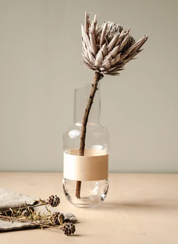 Carafe Veneer 1 L de Muurla est une combinaison moderne de design finlandais, de verre et de contreplaqué de bouleau qui rehausse à la fois la table de tous les jours et la table de fête. La forme élégante rend la carafe facile à verser, tandis que le détail en bois apporte une expression chaleureuse et proche de la nature. Parfaite pour l'eau, les sirops ou les boissons que vous souhaitez servir avec soin. Un bel élément fonctionnel à laisser sur la table ou sur le plateau de service lorsque les invités arrivent.