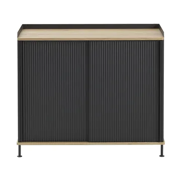 Enfold Sideboard 100x45x85 cm de Muuto est fabriqué en acier laqué et en chêne massif. Ce buffet unique combine une esthétique industrielle et accueillante grâce à ses portes en acier rainuré et à ses éléments en bois chaleureux. Avec des étagères réglables et des passes-câbles discrets, il constitue une solution de rangement flexible idéale comme console média, dans l'entrée ou comme rangement haut dans n'importe quelle pièce.
