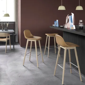 Tabouret de bar Fiber avec dossier 65 cm de Muuto est une création polyvalente d'Iskos‑Berlin. Fabriqué dans un matériau d'assise novateur à base de plastique recyclable et de fibres de bois, il offre un confort optimal sur un espace minimal. Entièrement recyclable et personnalisable avec deux options de hauteur, plusieurs choix de couleur, options de revêtement et piétement. Un choix fonctionnel et respectueux de l'environnement pour votre espace.