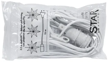 Câble Basic E14 3,5 m de Star Trading est un ensemble de suspension complet qui peut être utilisé pour des étoiles de l’Avent en papier. Combinez-le avec une source lumineuse adaptée et une belle étoile en papier pour créer une atmosphère de Noël chaleureuse dans votre fenêtre.
