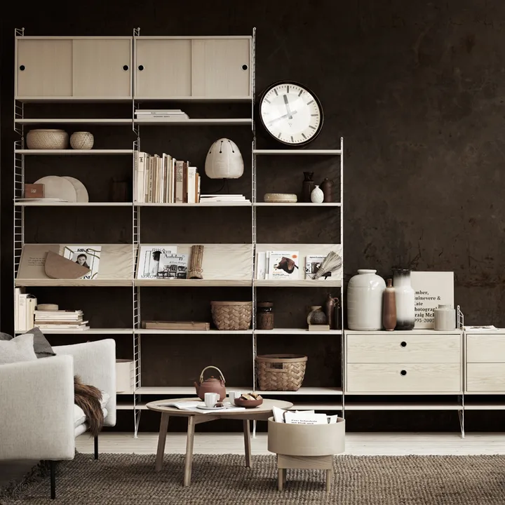 Utilisez l'outil de conception Build Your Own String® pour concevoir un système d'étagères String qui s'adapte parfaitement à votre intérieur et à votre pièce. L'outil est facile à utiliser et comprend toutes les pièces de la gamme String.