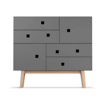 Commode Peep B1 de Zweed, conçue par Håkan Johansson, est un meuble spacieux et fonctionnel. La commode est un peu plus profonde et plus haute que ses sœurs, offrant beaucoup d'espace dans les tiroirs et les compartiments. Elle présente des poignées placées de manière asymétrique, donnant un aperçu visuel de son contenu. Avec des portes et tiroirs à fermeture douce, ainsi que plusieurs choix de couleurs et de piètements, elle offre à la fois style et praticité pour votre intérieur. La Commode Peep B1 est disponible en plusieurs modèles et couleurs.