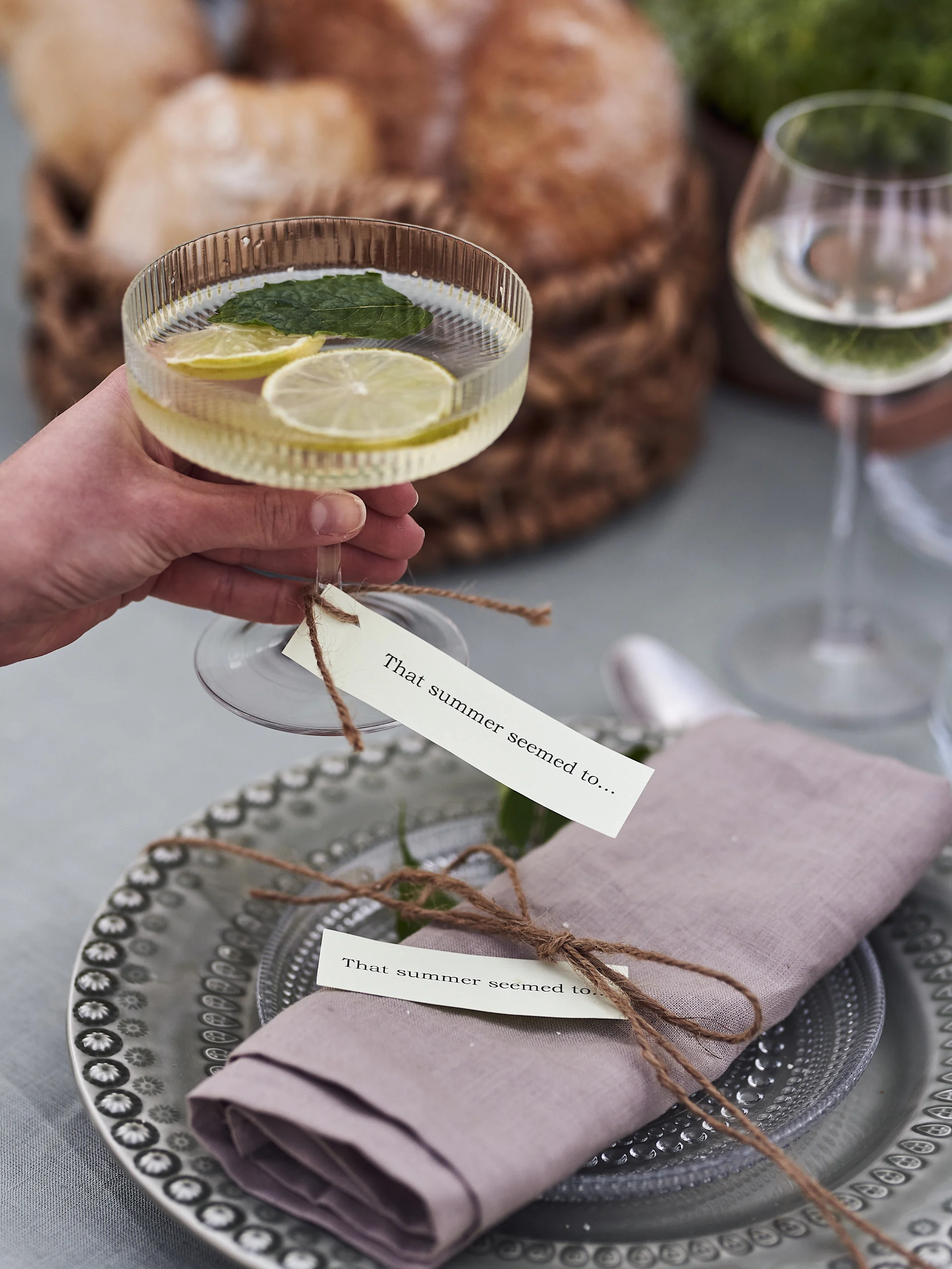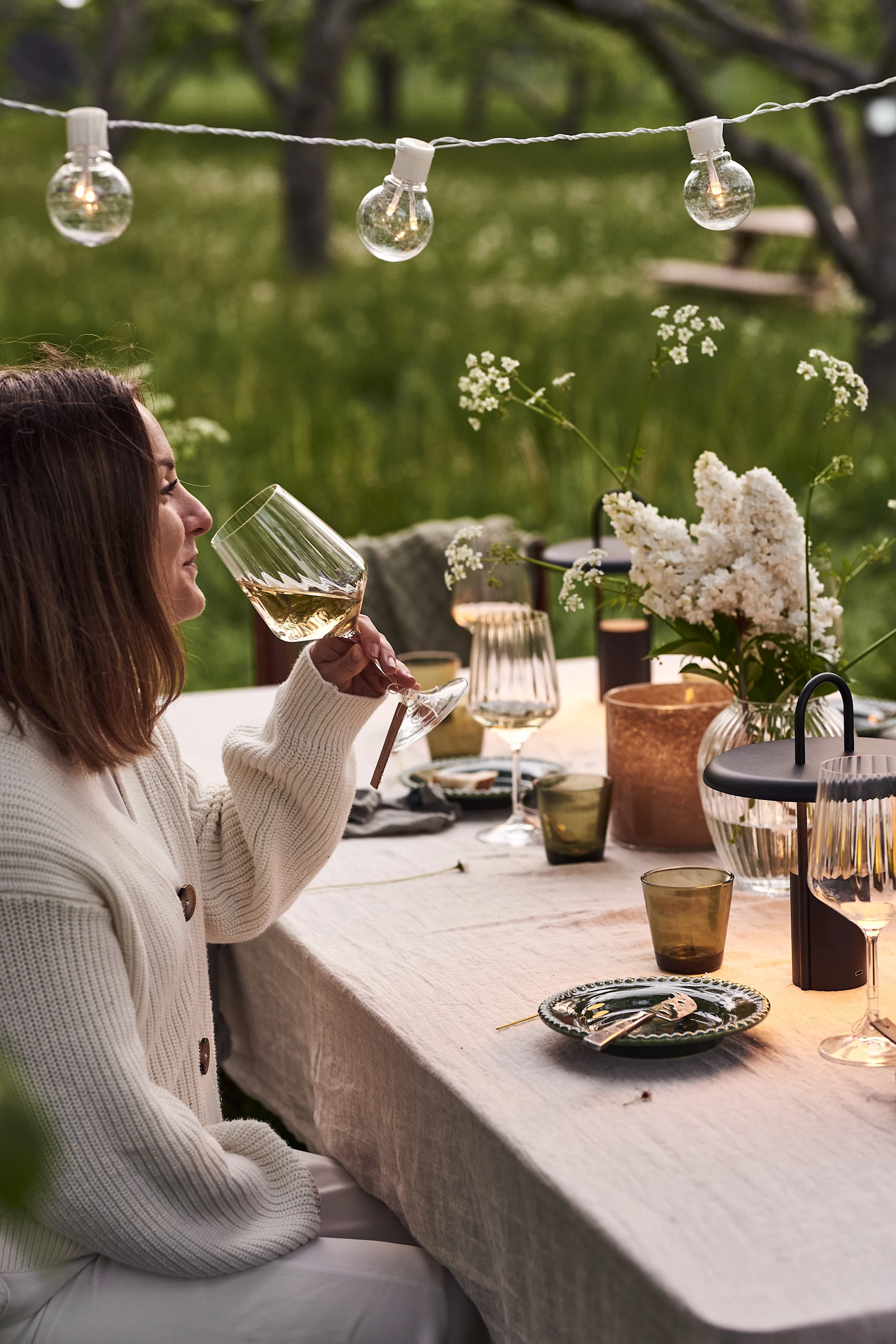 POTTERYJO Assiette Daisy | IITTALA Assiette Kastehelmi | AYTM Photophore Tota | ROSENDAHL Verre à vin blanc Premium